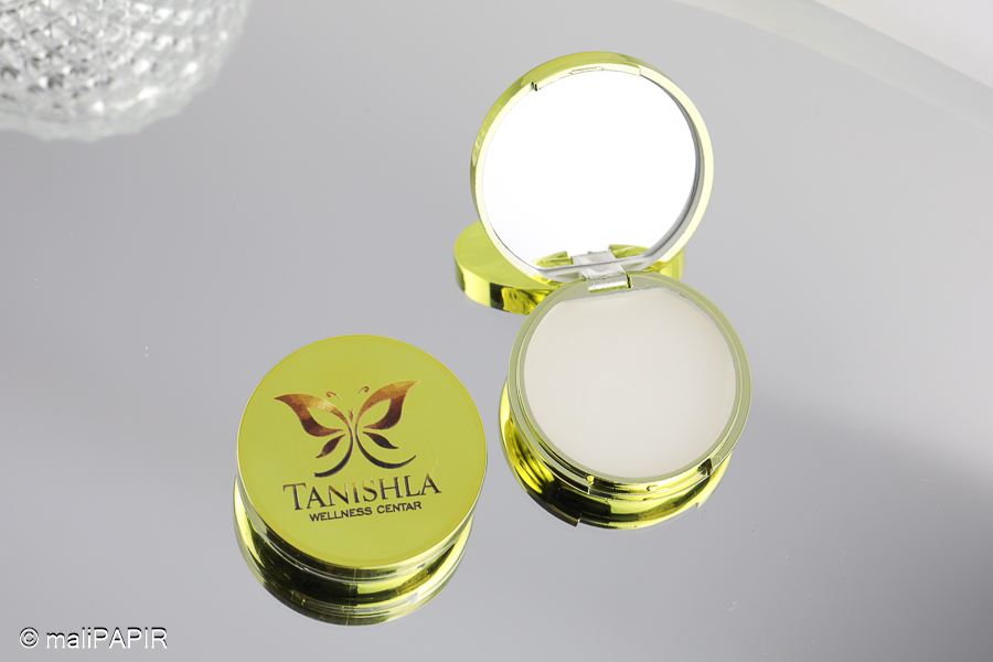 Balzam za usne s mirisom vanilije u metalik ambalaži u 3 nijanse: zlatna, srebrna i rose gold. Na poklopcu otisnut je vaš logo ili tekst po želji. Ovaj prirodni balzam obogaćen je zaštitnim faktorom, nudeći ne samo hidrataciju već i zaštitu usana, dok metalik boja i praktično ogledalo osiguravaju zadovoljstvo klijenta.