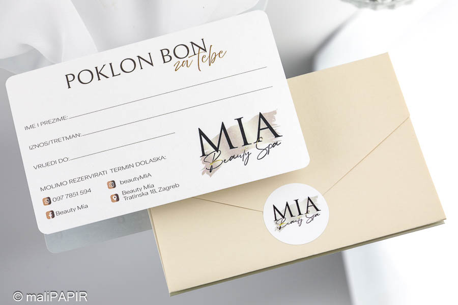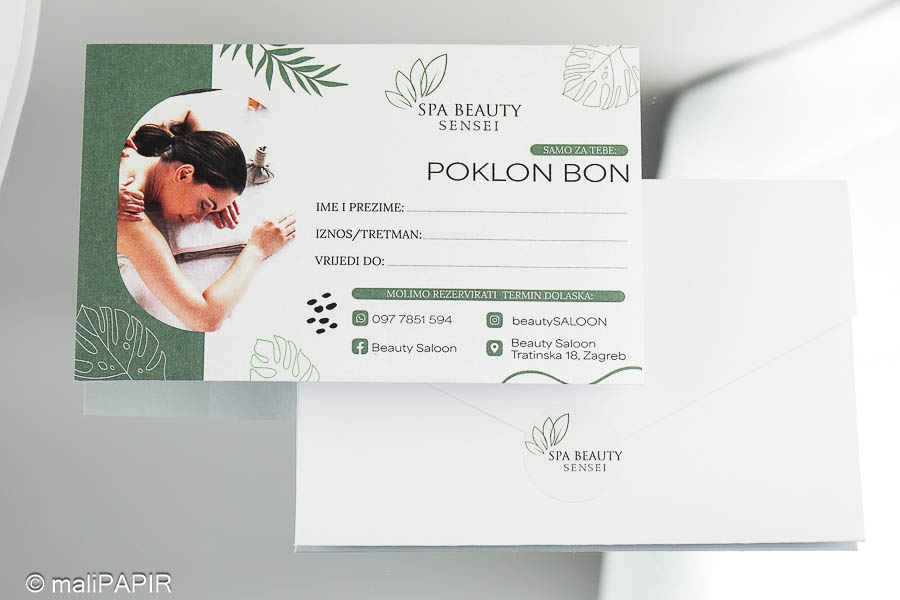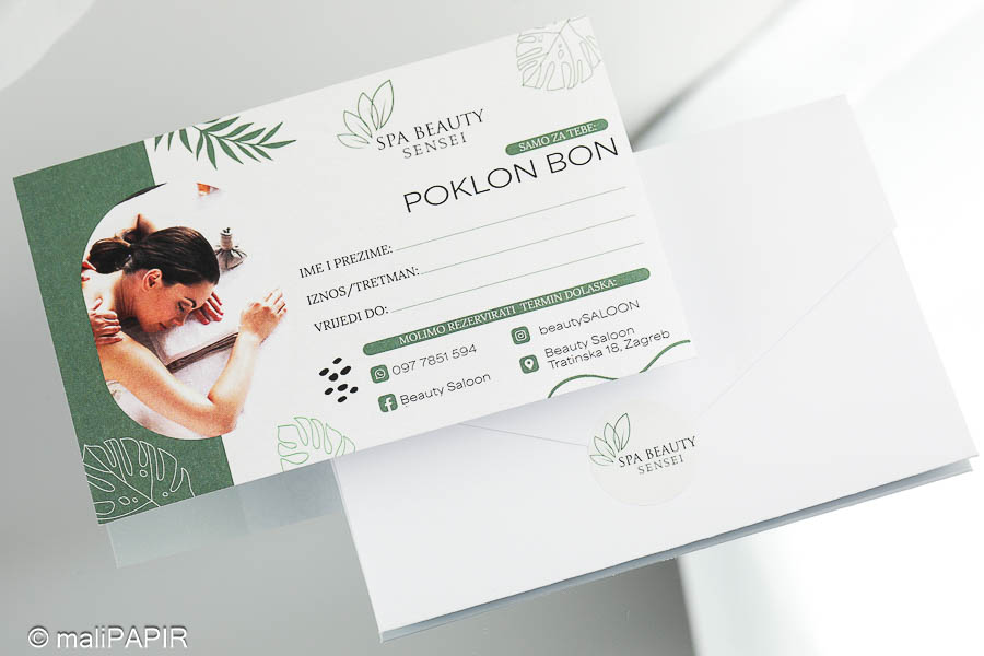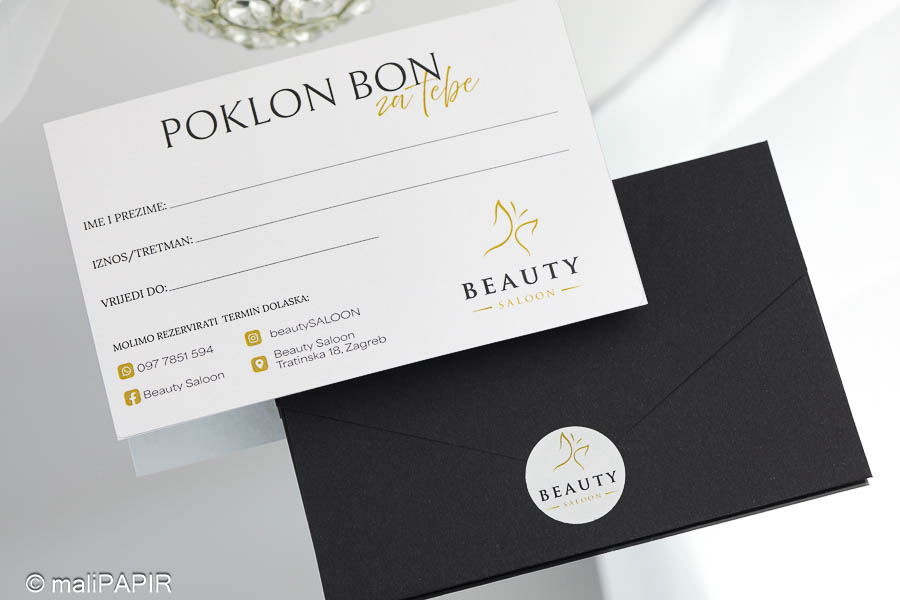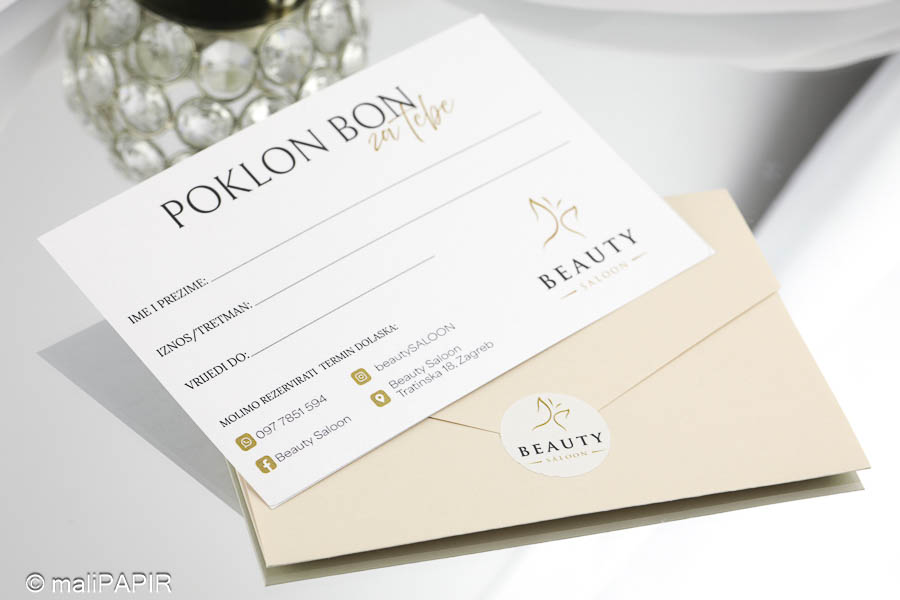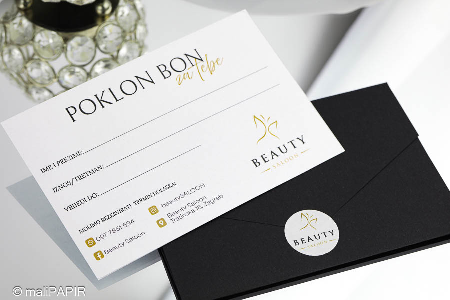 Kvalitetan poklon bon modernog, minimalističkog dizajna odlikuje se čistim linijama i elegantnim tipografskim rješenjima, ističući jednostavnost i sofisticiranost bez nepotrebnih detalja.