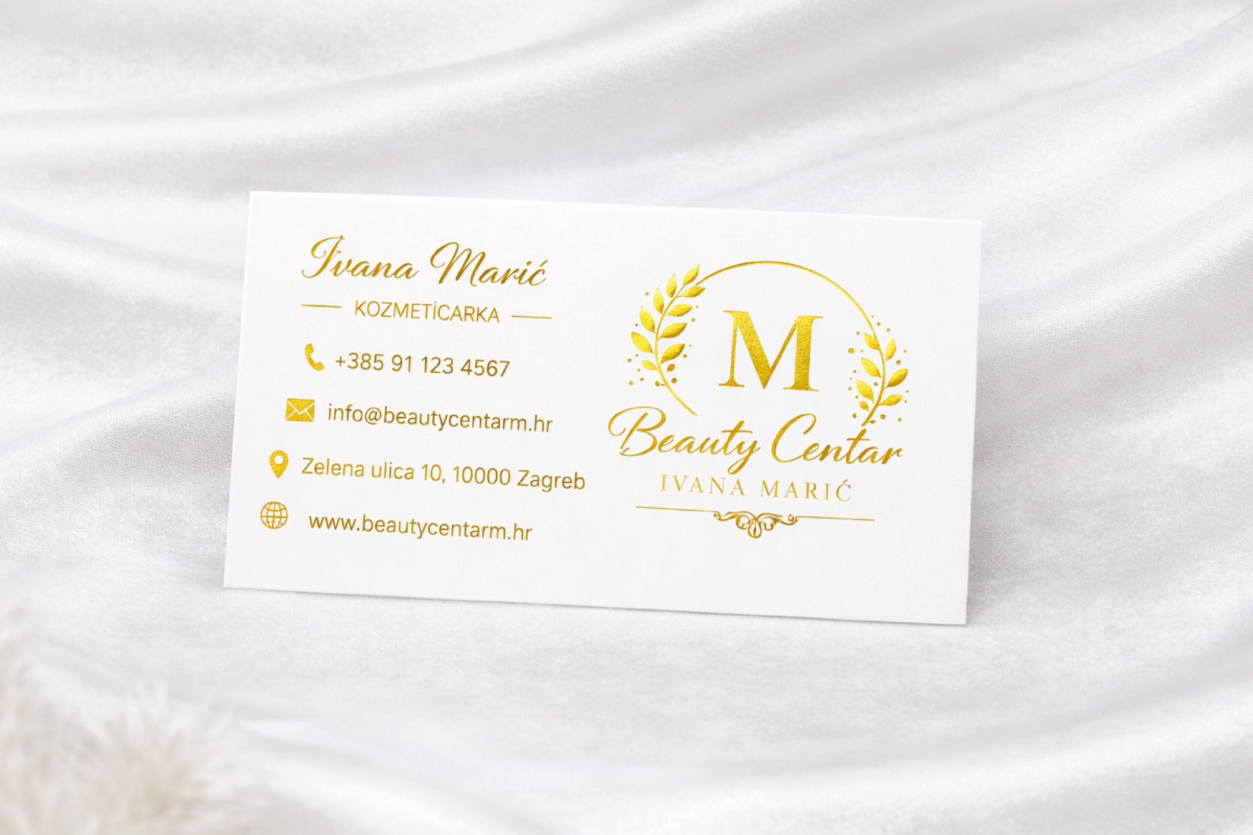 Ovaj model vizitki izrađen je od 300 gramskog kartona i jedanostano je tisak u opciji foliotiska. Za tisak koristimo premium talijanske kartone.